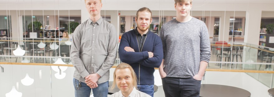 Vasemmalta oikealle: Aleksi Kontiainen (vanha varapuheenjohtaja), Tuomas Mäkinen (vanha puheenjohtaja), Simo Homanen (puheenjohtaja), Pauli Tuovinen (vanha rahastonhoitaja)