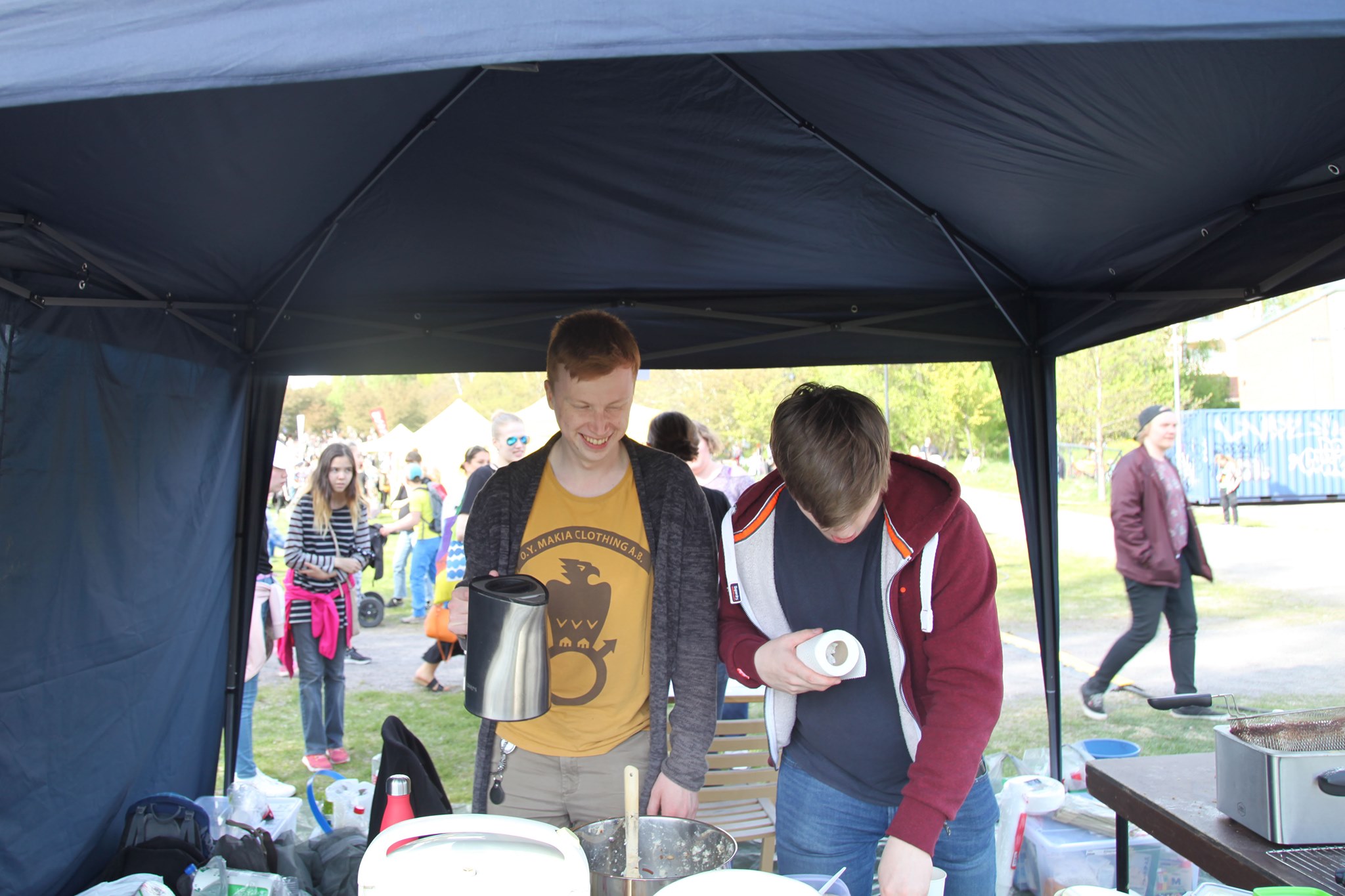 Our vice-chairman Ville (left) and secretary Elias (right) enjoying the cooking preparations